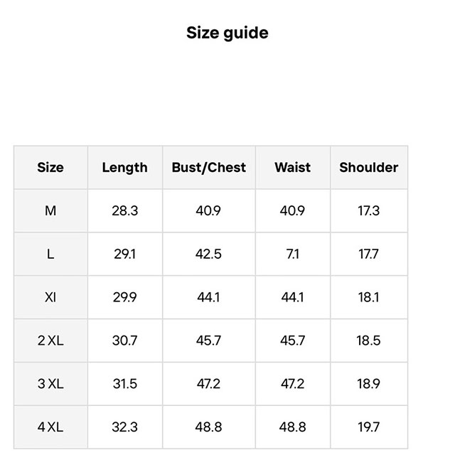 | Size | 2XL, 3XL, L, M, XL |